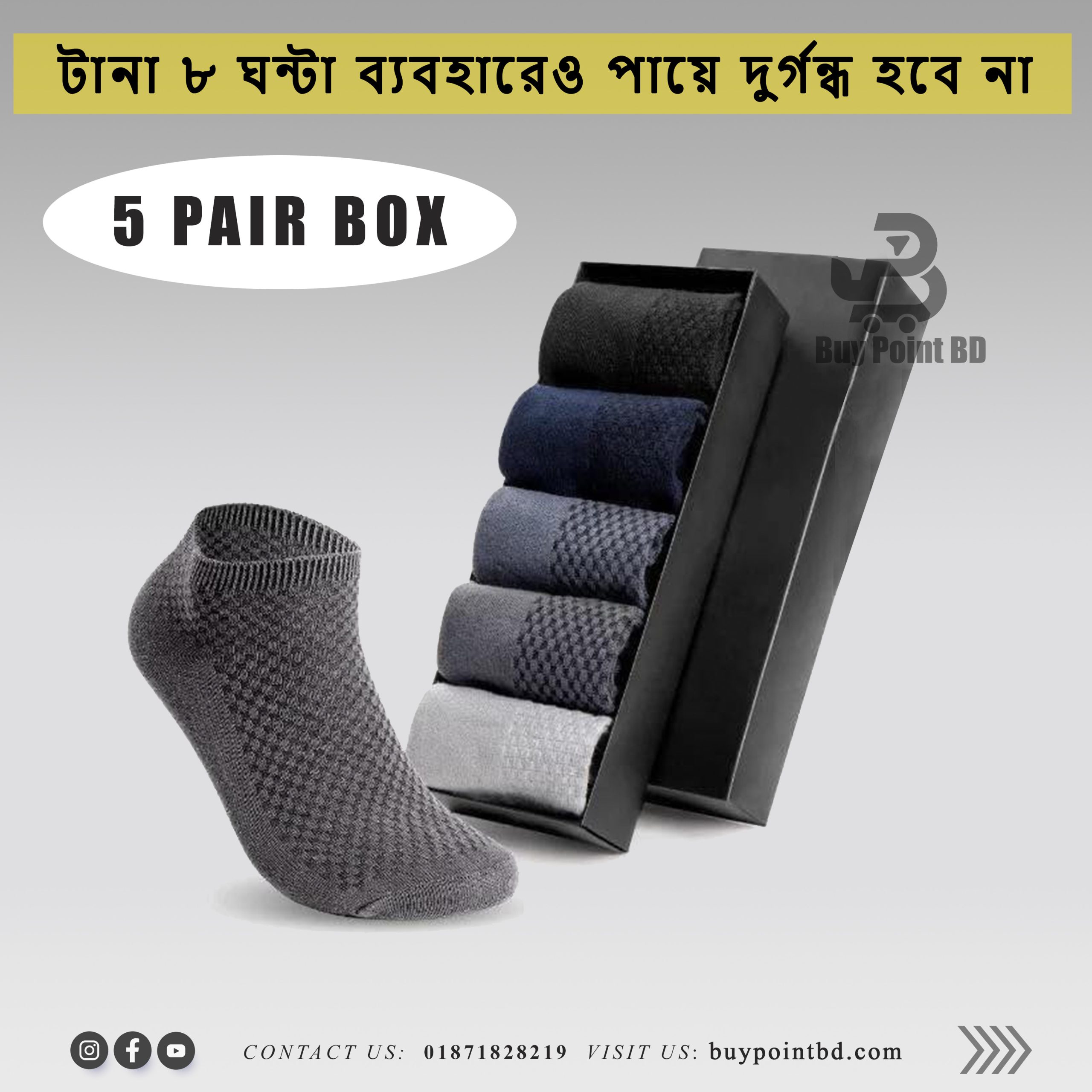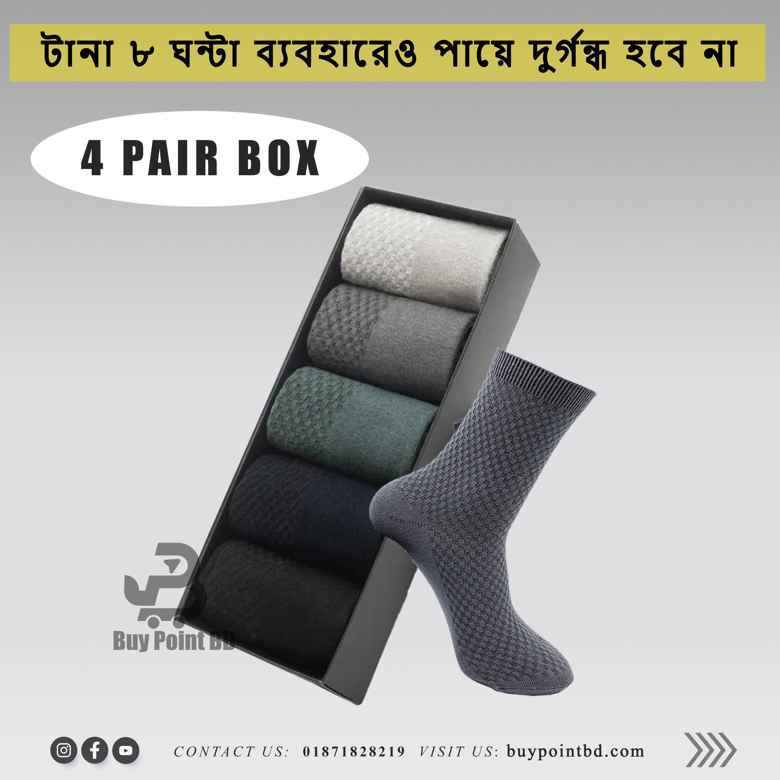 আপনার পা কি ঘামে? দুর্গন্ধে অস্বস্তি হয়?*সমাধান এখানে! আমাদের *ডিওডোরেন্ট কটন সক্স* শুধু একজোড়া মোজা নয়, বরং এটি আপনার পায়ের জন্য একটি *স্মার্ট প্রোটেকশন শিল্ড!